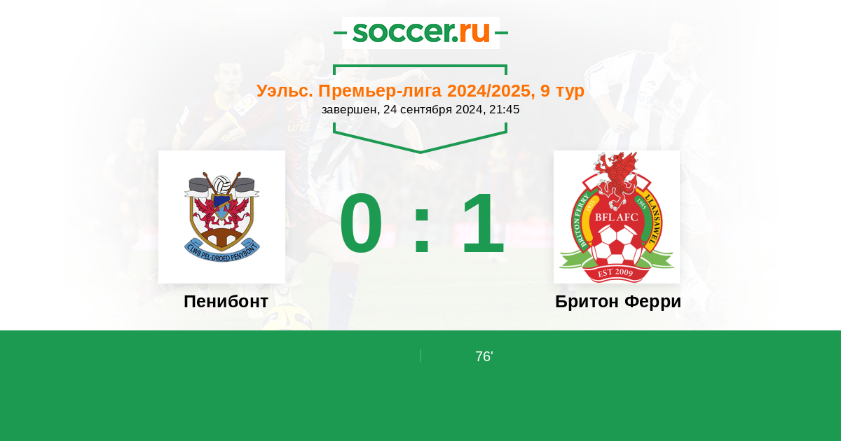Протокол матча Пенибонт против Бритон Ферри