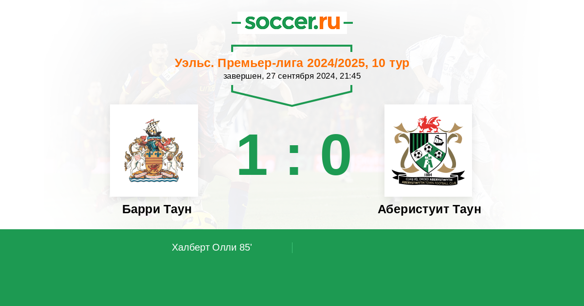 Протокол матча Барри Таун против Аберистуит Таун
