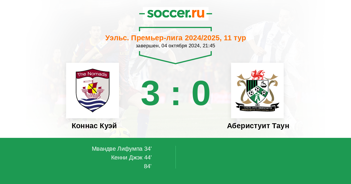 Протокол матча Коннас Куэй против Аберистуит Таун