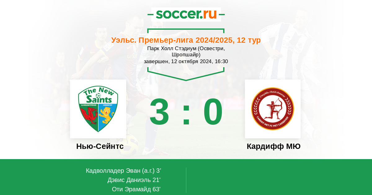 Протокол матча Нью-Сейнтс против Кардифф МЮ