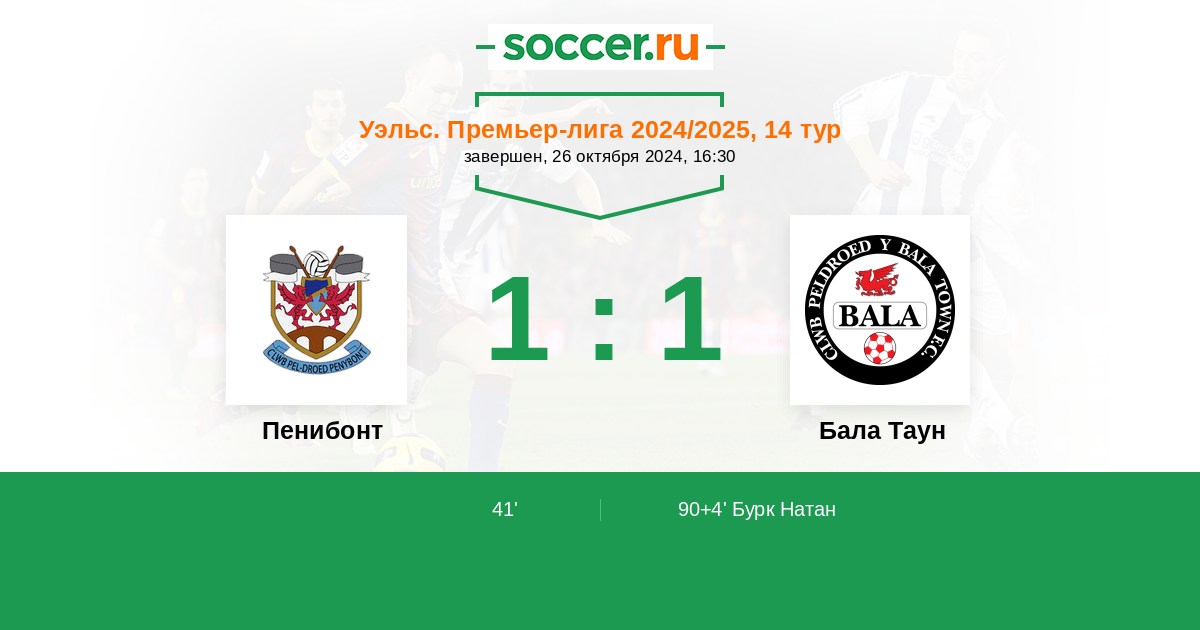 90+4’ 1:1 Бурк Натан