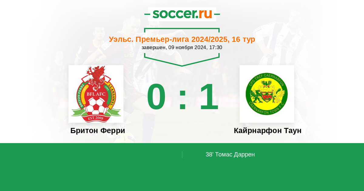 Протокол матча Бритон Ферри против Кайрнарфон Таун