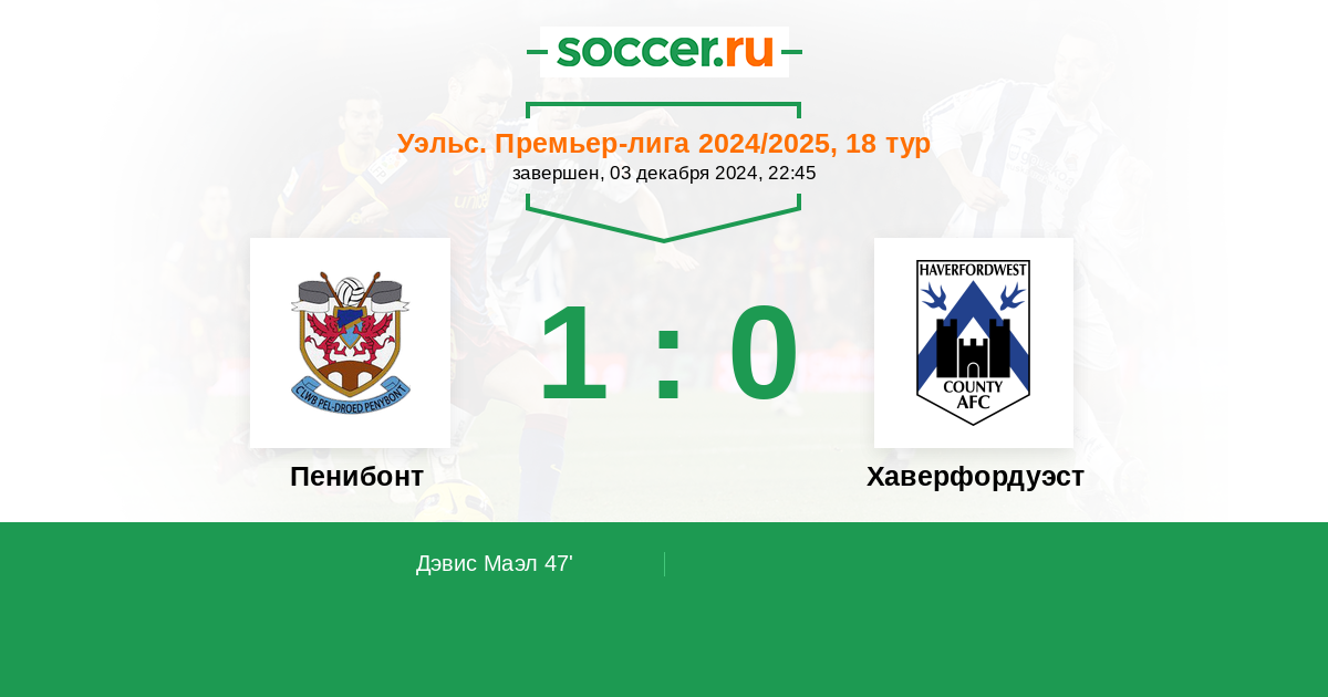 Протокол матча Пенибонт против Хаверфордуэст