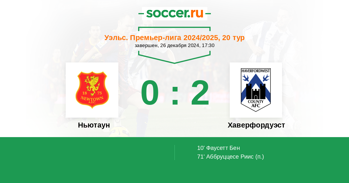 Протокол матча Ньютаун против Хаверфордуэст