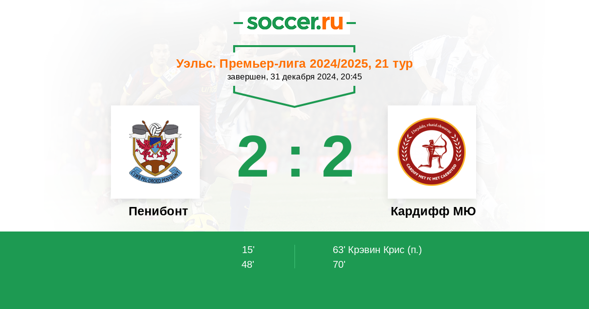 63’ 2:1(П) Крэвин Крис