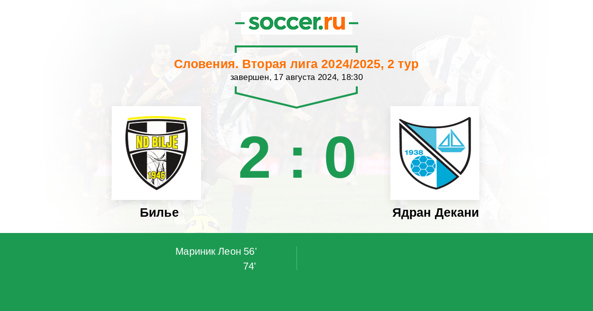 Протокол матча Билье против Ядран Декани