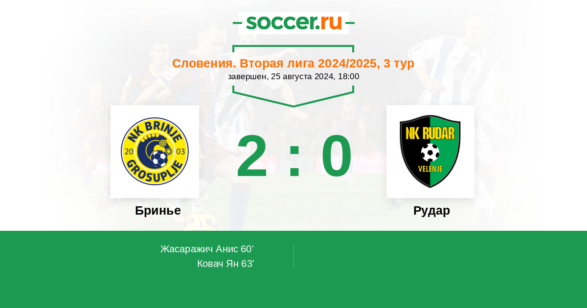 Протокол матча Бринье против Рудар