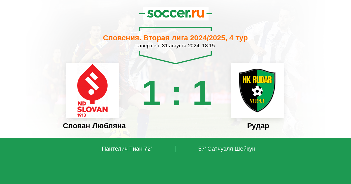 Протокол матча Слован Любляна против Рудар