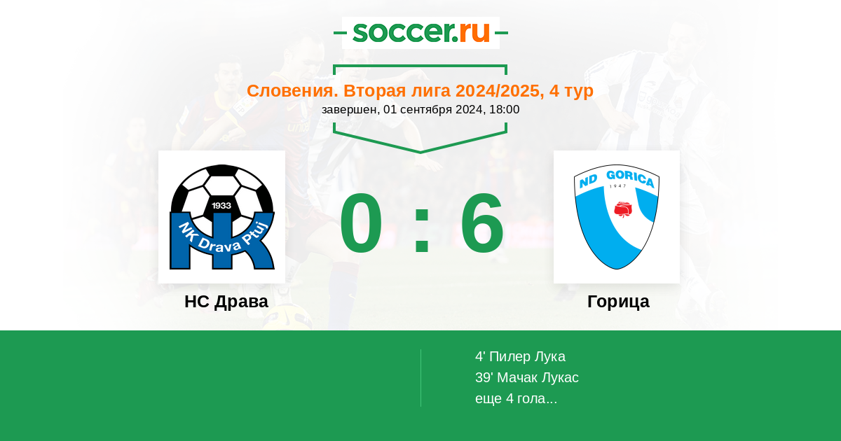 Протокол матча НС Драва против Горица