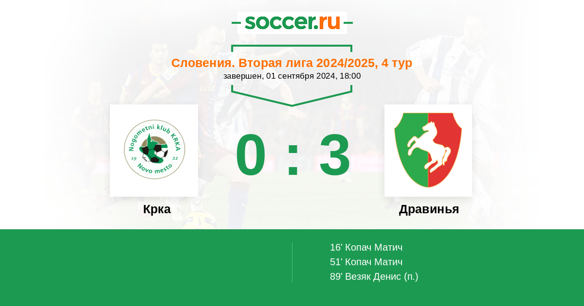 Протокол матча Крка против Дравинья
