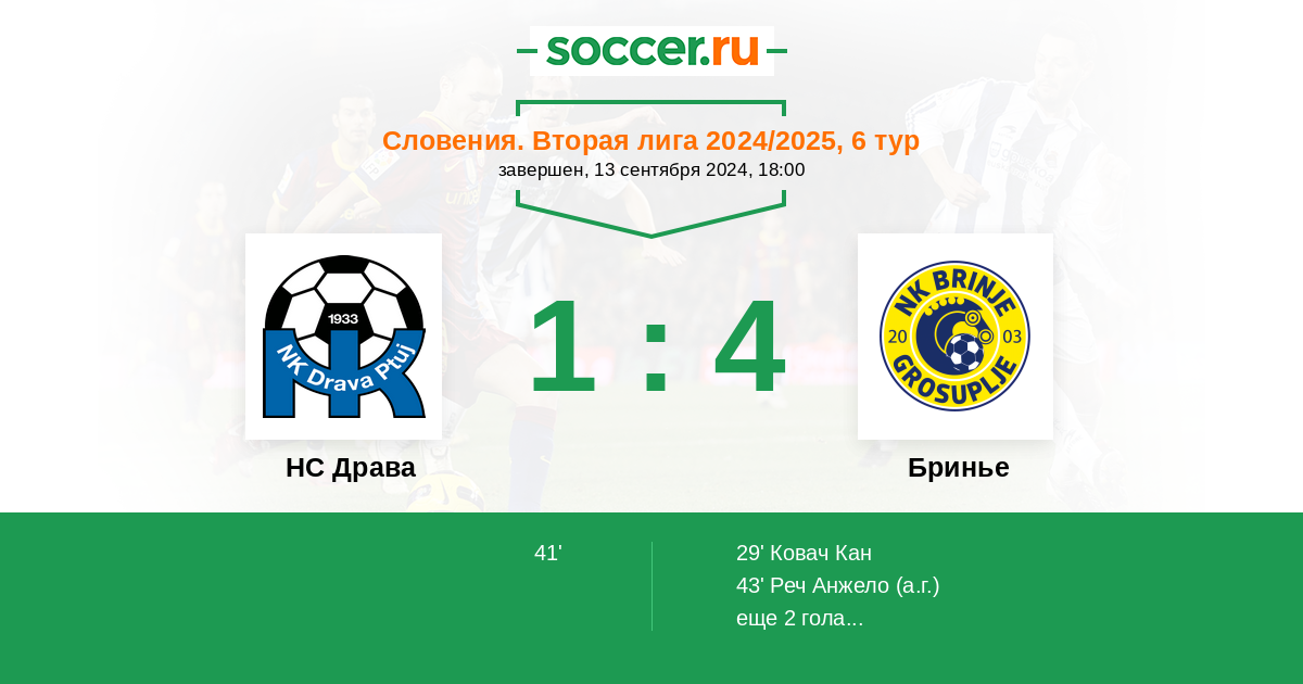 Протокол матча НС Драва против Бринье