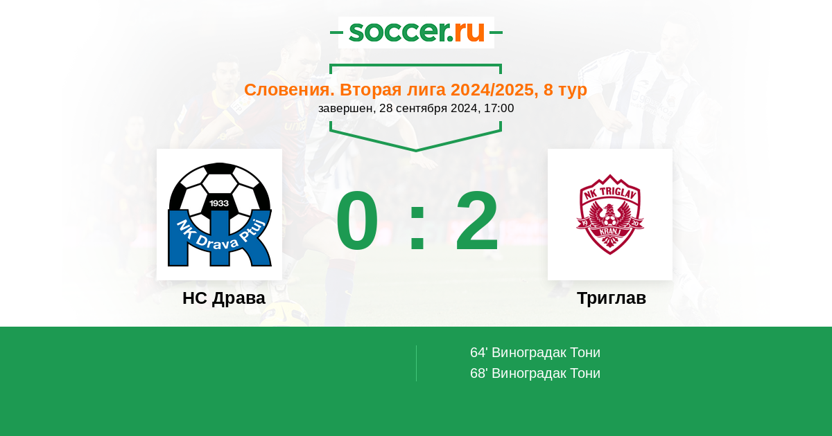 Протокол матча НС Драва против Триглав