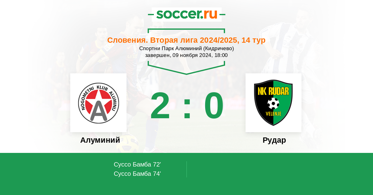 Протокол матча Алуминий против Рудар