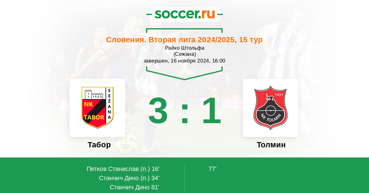 Протокол матча Табор против Толмин