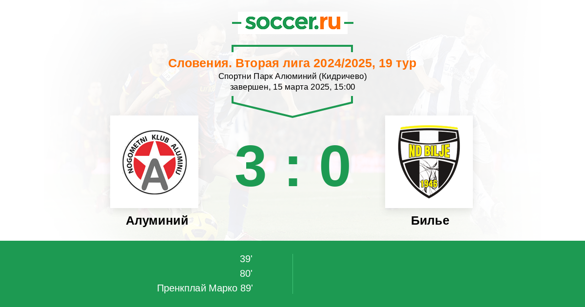 Протокол матча Алуминий против Билье