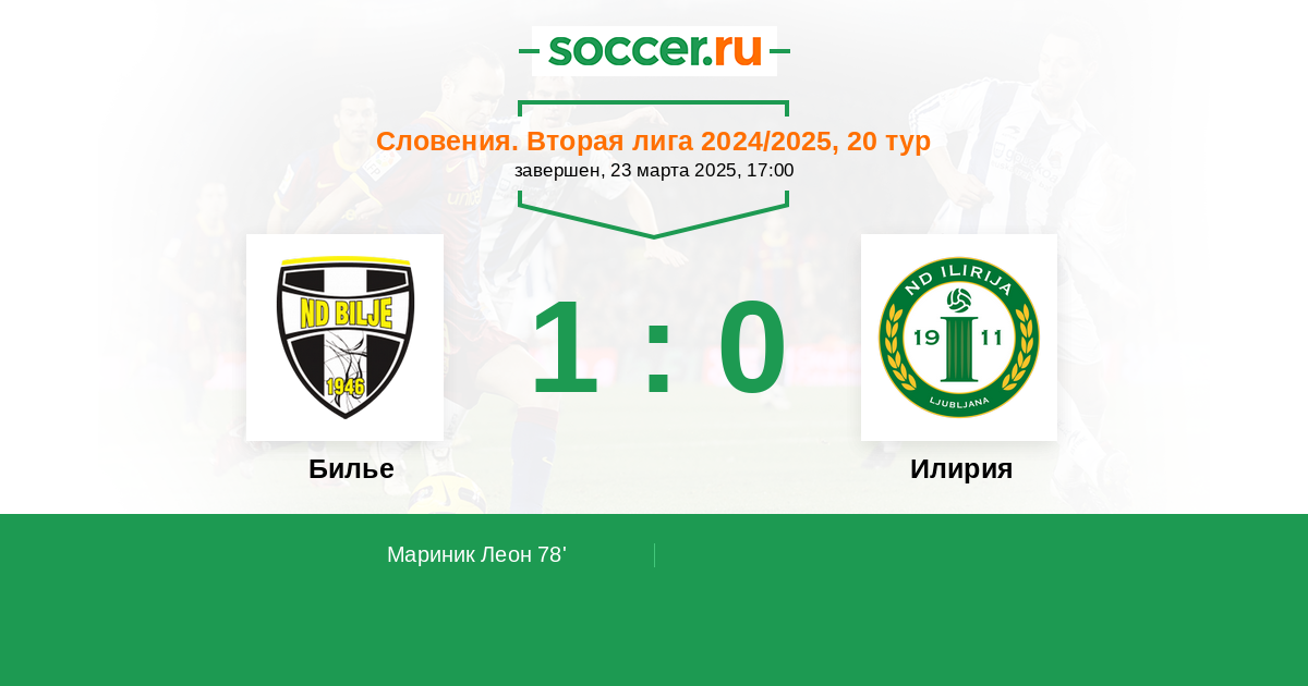 Протокол матча Билье против Илирия