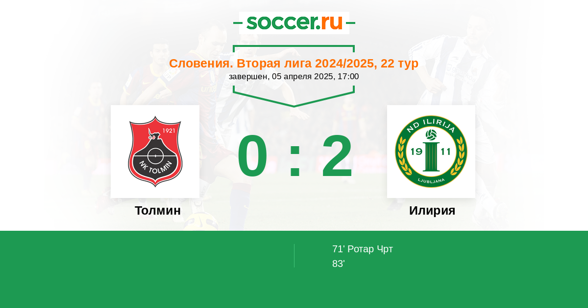 Протокол матча Толмин против Илирия
