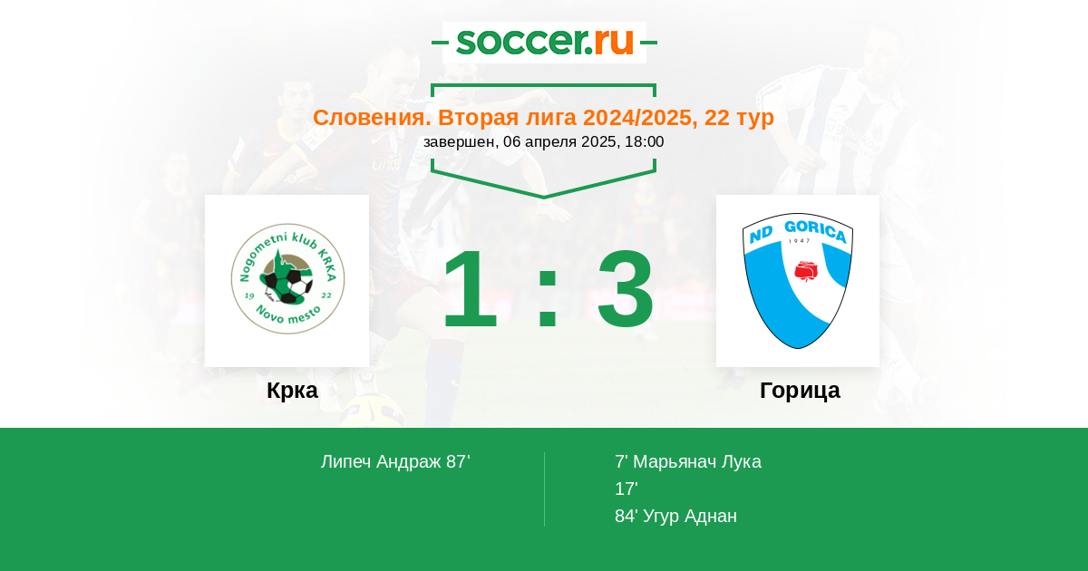 Протокол матча Крка против Горица