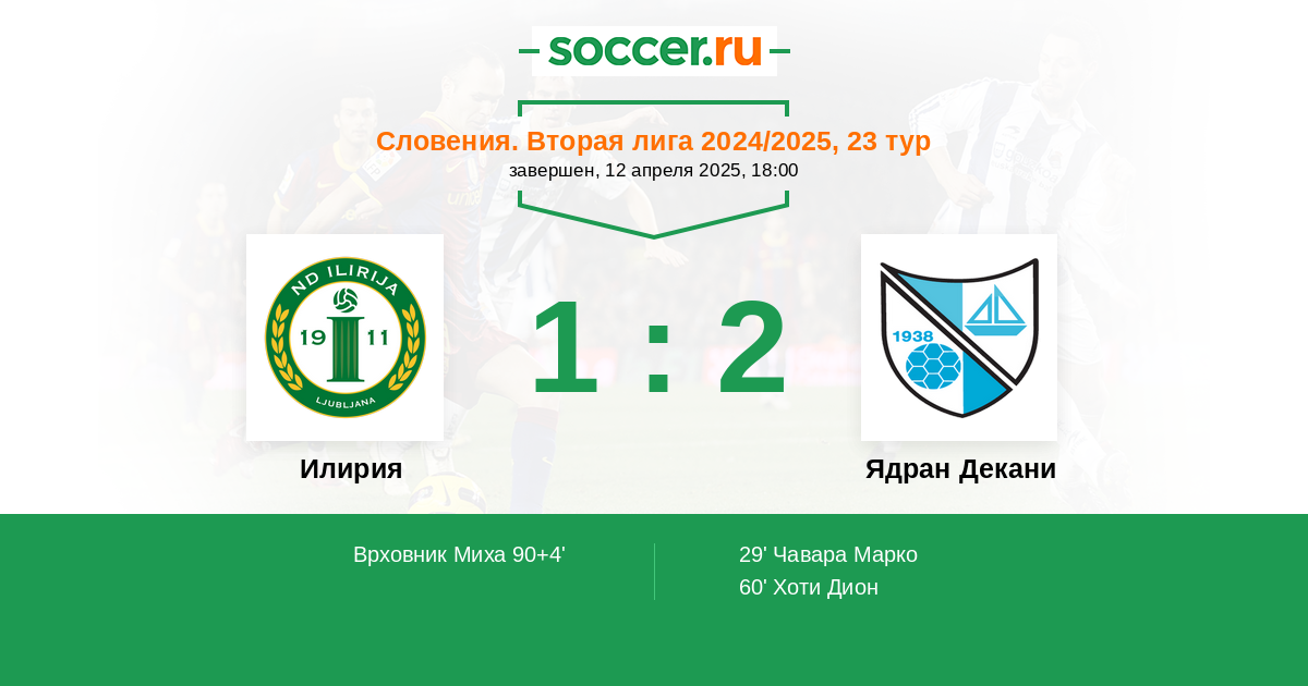 Протокол матча Илирия против Ядран Декани