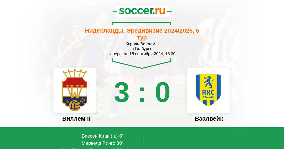 В матче голландского Эредивизие между командами Виллем II и Ваалвейк рискну предположить победу хозяев, потому как они играют при поддержке своих болельщиков, плюс результативнее в атаке и надёжнее в обороне.