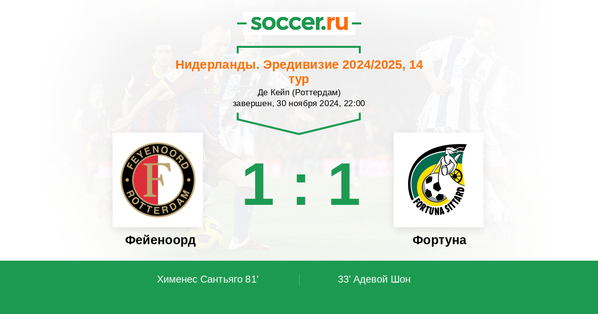Протокол матча Фейеноорд против Фортуна
