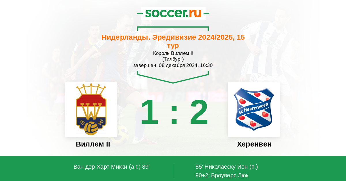 Протокол матча Виллем II против Херенвен