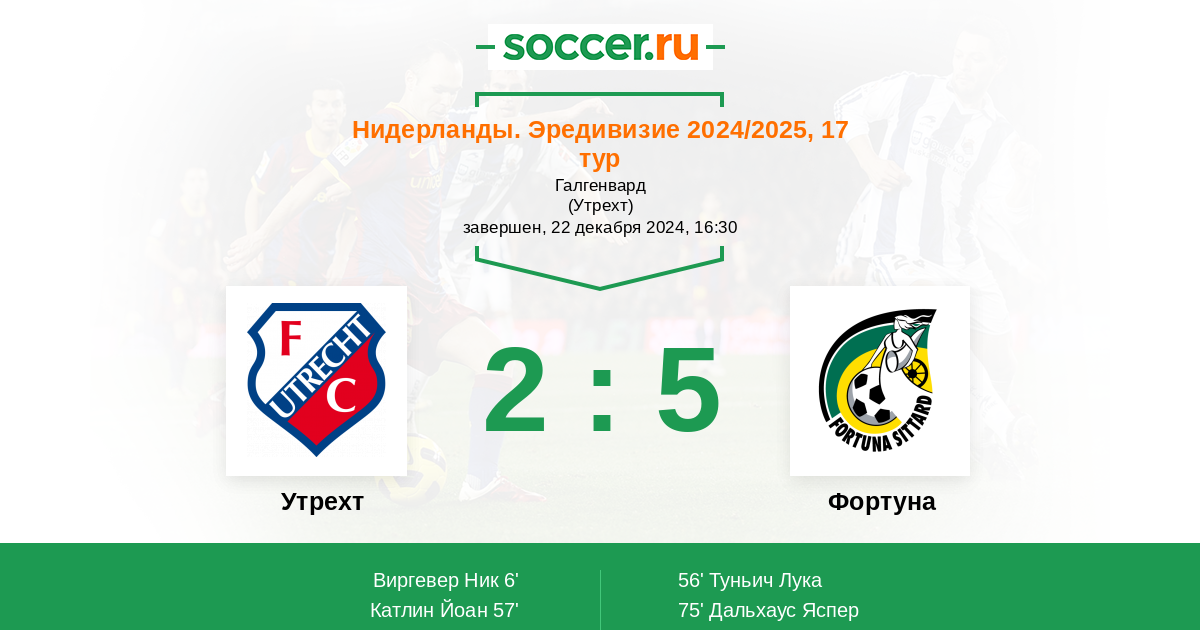 Протокол матча Утрехт против Фортуна