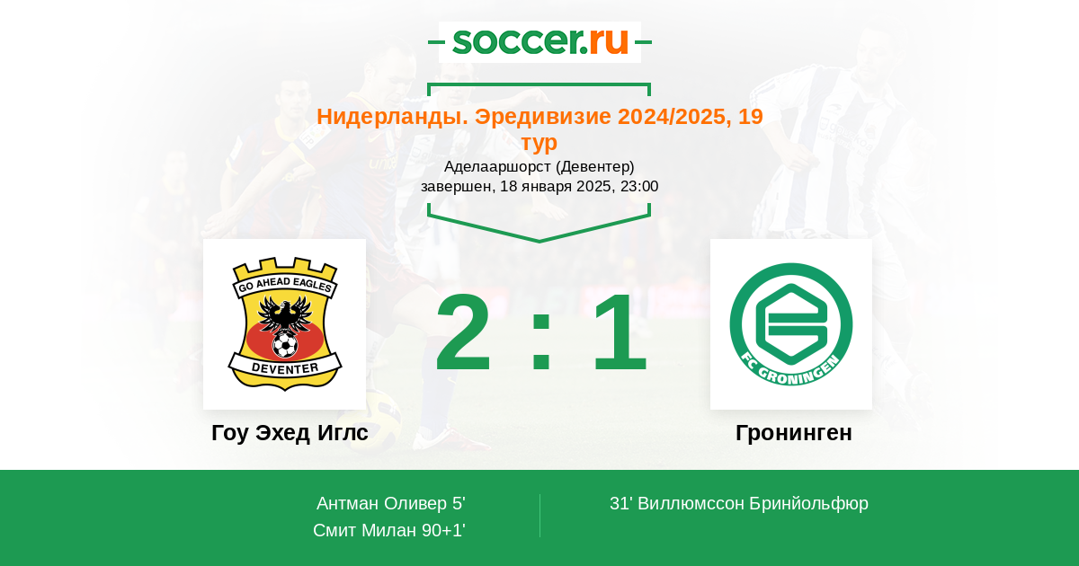 Протокол матча Гоу Эхед Иглс против Гронинген