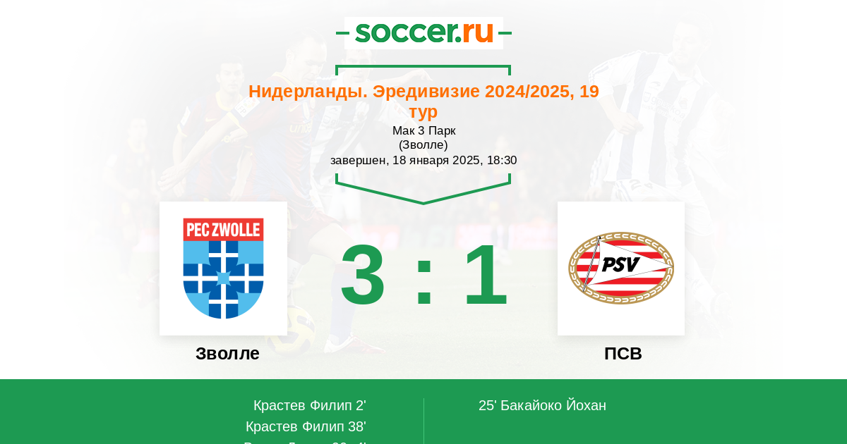 Протокол матча Зволле против ПСВ