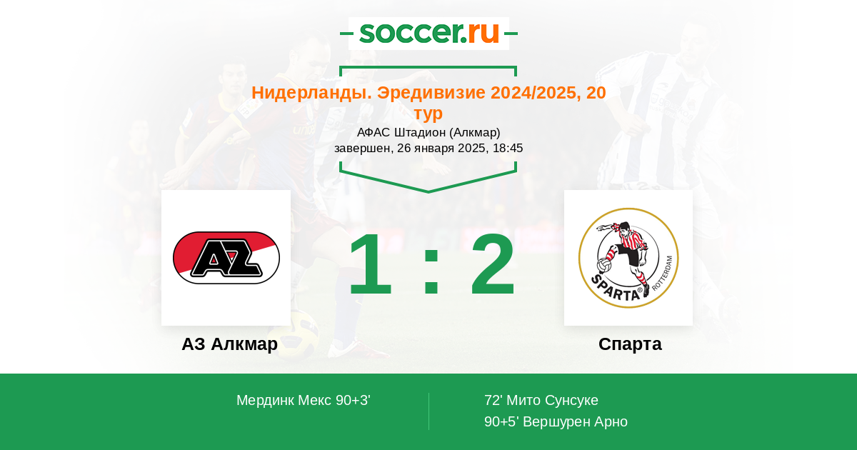 Протокол матча АЗ Алкмар против Спарта