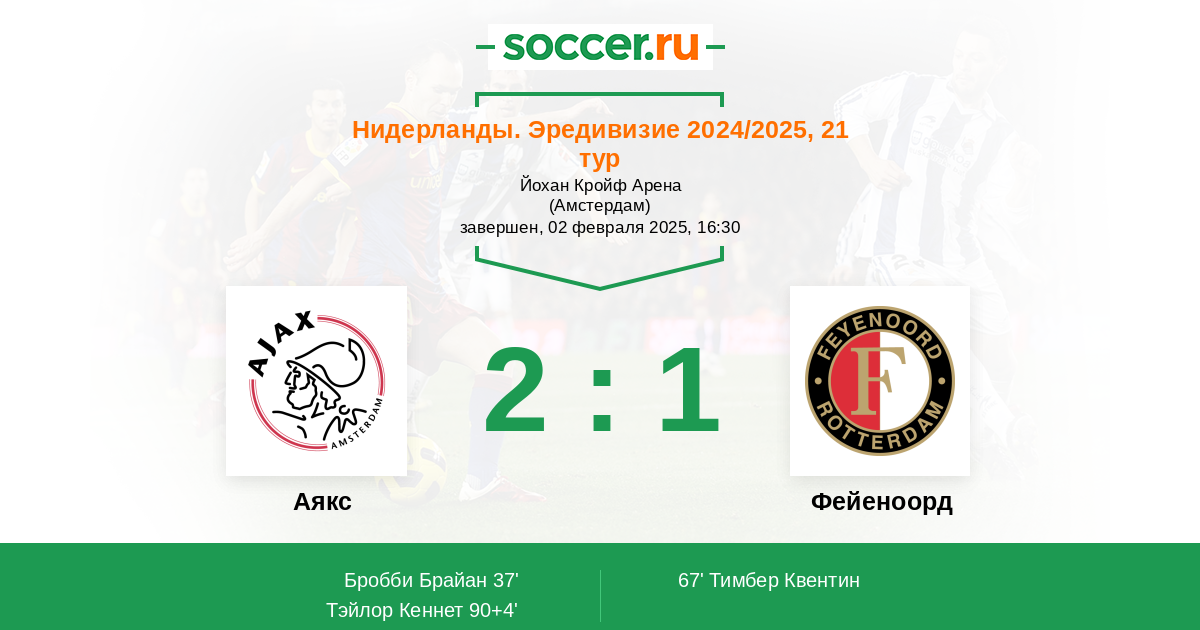 Протокол матча Аякс против Фейеноорд