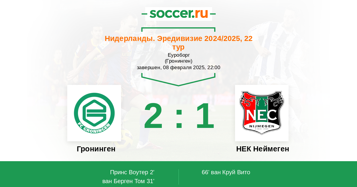 Протокол матча Гронинген против НЕК Неймеген