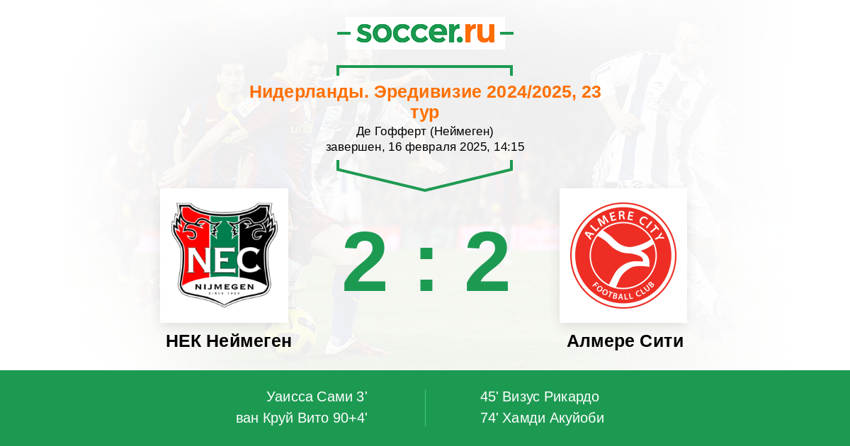 Протокол матча НЕК Неймеген против Алмере Сити