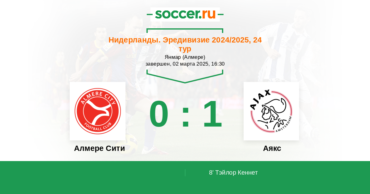 Протокол матча Алмере Сити против Аякс