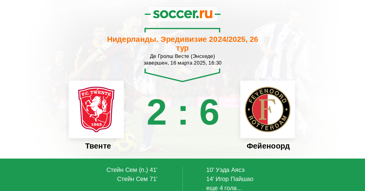 Протокол матча Твенте против Фейеноорд