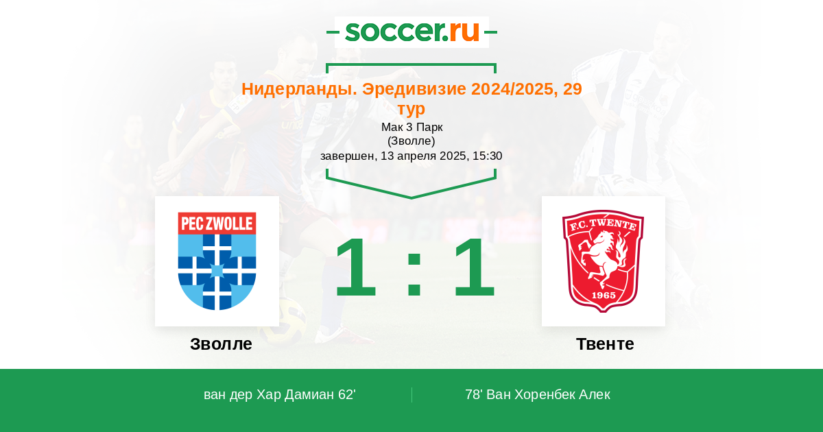 Протокол матча Зволле против Твенте