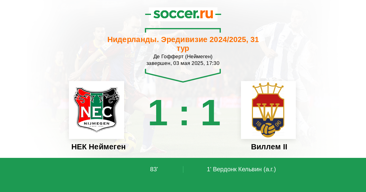 Протокол матча НЕК Неймеген против Виллем II