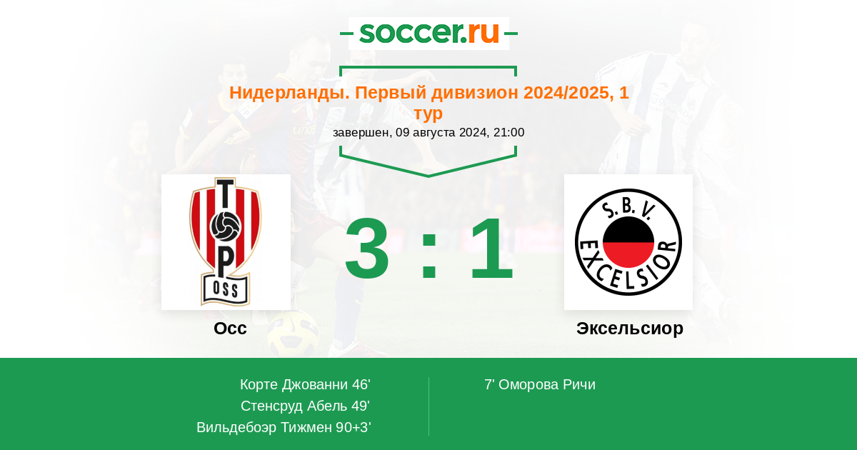 Протокол матча Осс против Эксельсиор