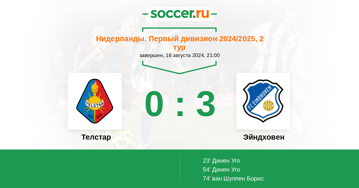 23' (0:1) Динен Уго (28) (ван Шуппен Борис (10))