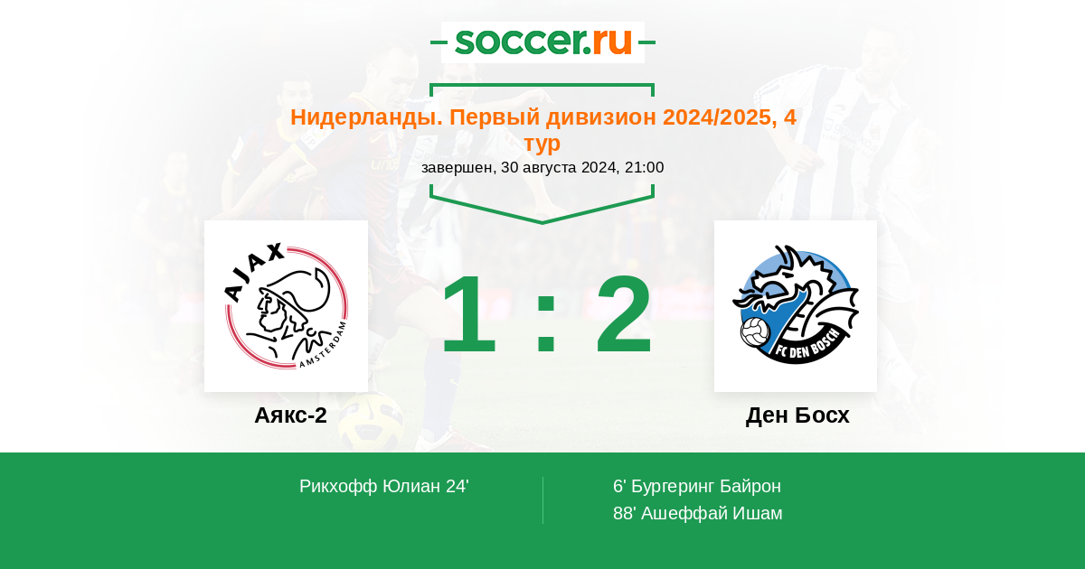 Протокол матча Аякс-2 против Ден Босх