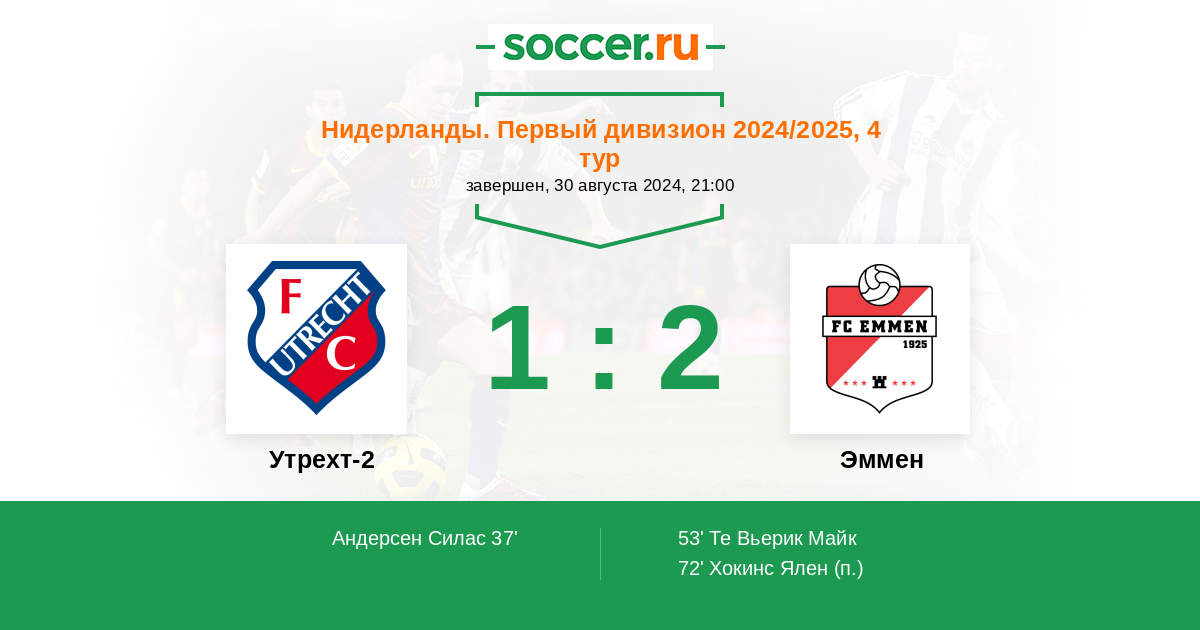 Протокол матча Утрехт-2 против Эммен