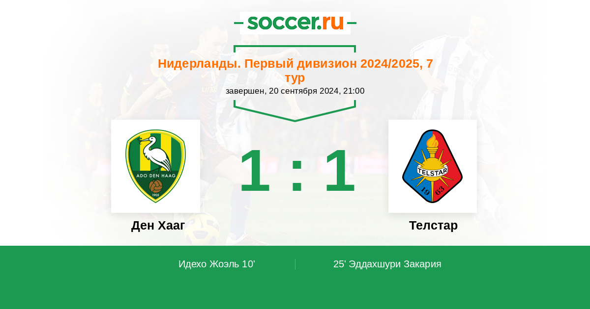Протокол матча Ден Хааг против Телстар