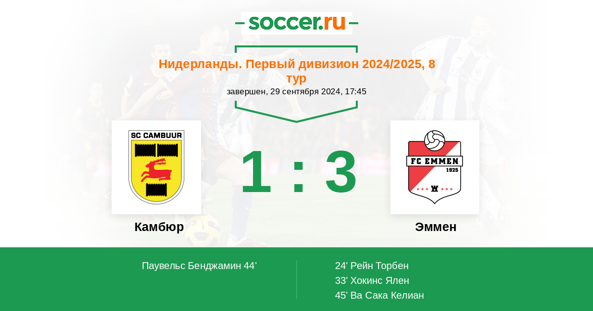 44' (1:2) Паувельс Бенджамин (29) (Димерс Марк (12))