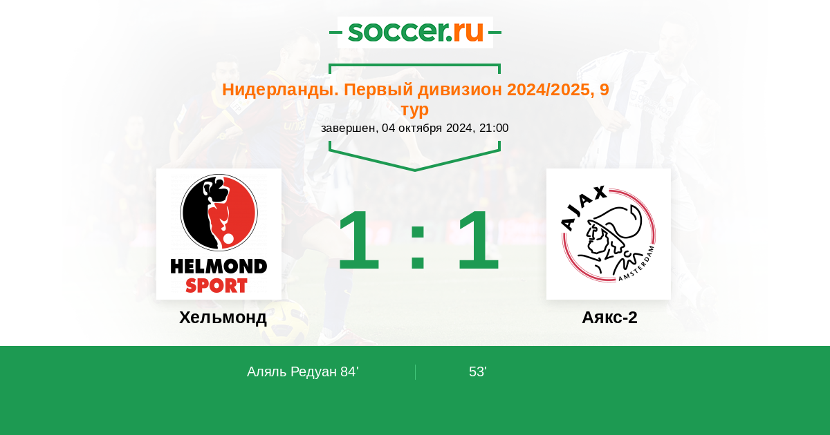 Протокол матча Хельмонд против Аякс-2