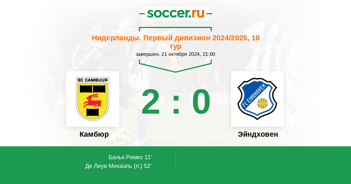 Протокол матча Камбюр против Эйндховен