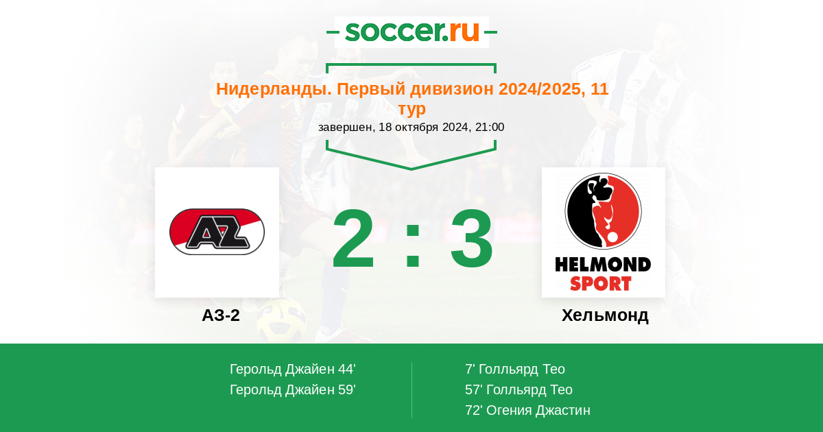 Протокол матча АЗ-2 против Хельмонд