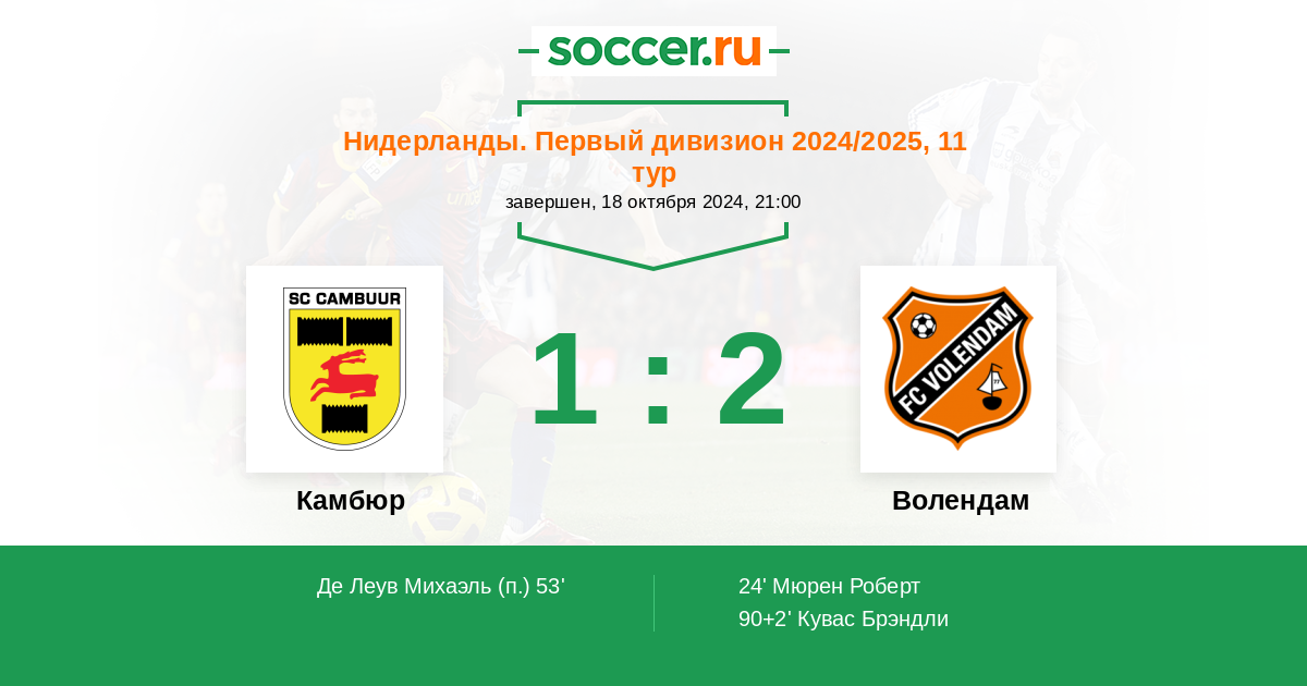 Протокол матча Камбюр против Волендам