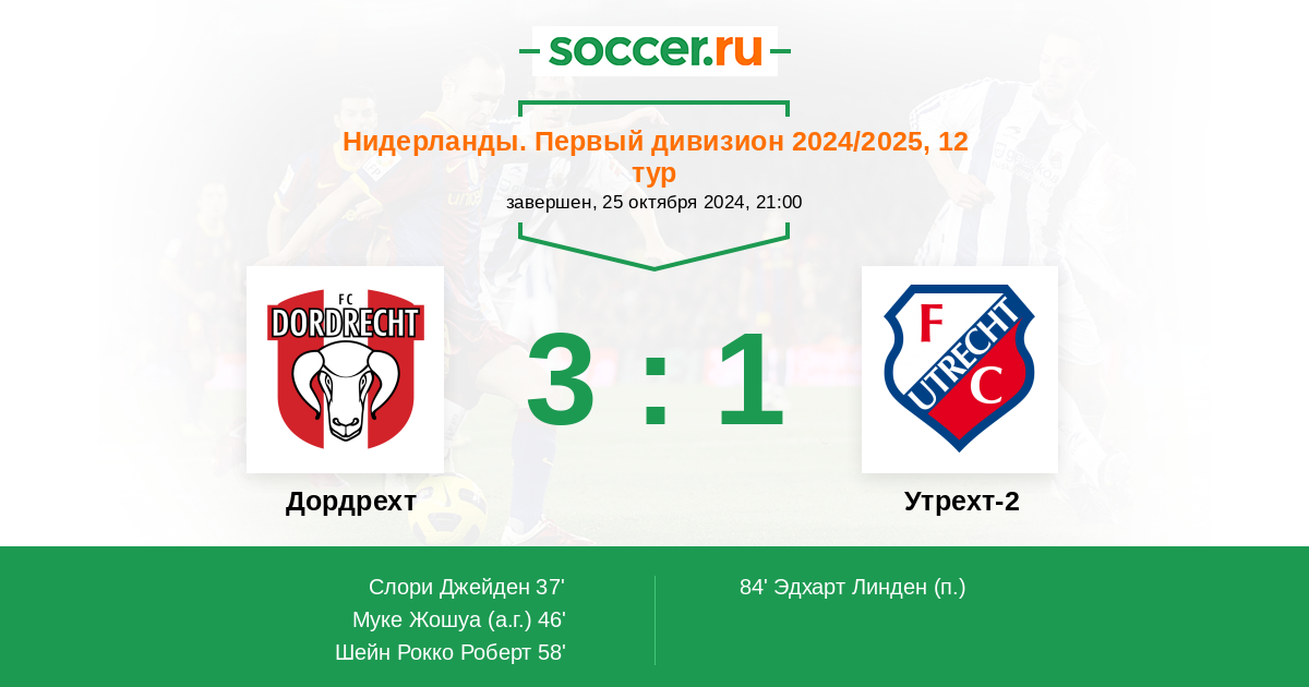 Протокол матча Дордрехт против Утрехт-2