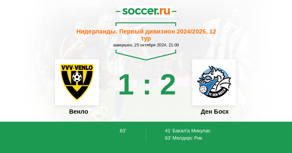 Протокол матча Венло против Ден Босх