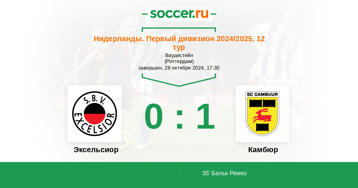 Протокол матча Эксельсиор против Камбюр